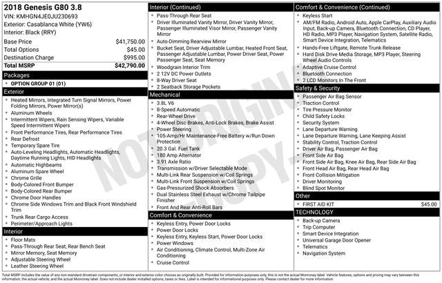 2018 Genesis G80 3.8